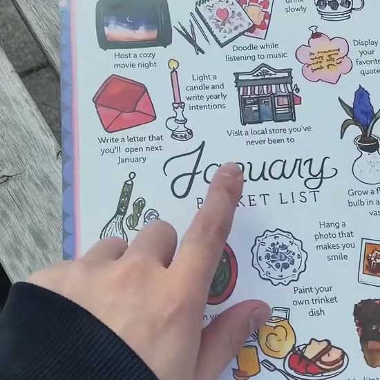 Blending a functional monthly planner with whimsical, watercolor-inspired bucket lists, each page invites you to swap “ordinary days” for small, joyful adventures. Whether you’re chasing summer sunsets, pressing fall leaves into a frame, or cozying up with a seasonal movie, every month comes with hand-painted prompts to help you savor the little things.